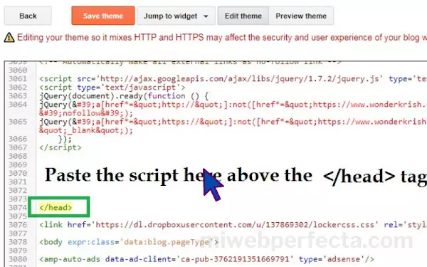 Paso 2: Busque la etiqueta </head> y pegue el siguiente código justo antes de la etiqueta </head>.