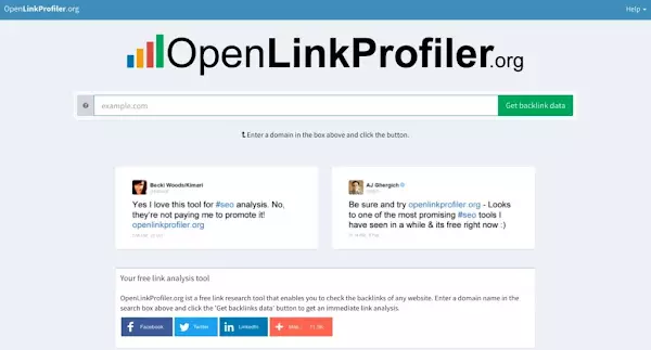 Open Link Profiler es una excelente herramienta que, además de ser gratuita, proporciona una gran cantidad de información sobre los enlaces. No hay limitaciones de uso y los filtros le permiten manipular la información a su conveniencia.