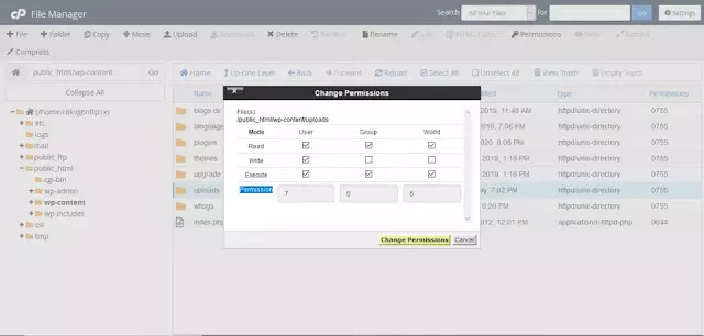 Para solucionar este problema, algunas personas sugieren cambiar los permisos de la carpeta de carga, por cualquier motivo, no debería hacerlo. En su lugar, debe asegurarse de que los permisos de la carpeta sean 755 y los permisos del archivo sean 644, pero no es necesario que analice este problema antes de probar las soluciones que propondremos a continuación.