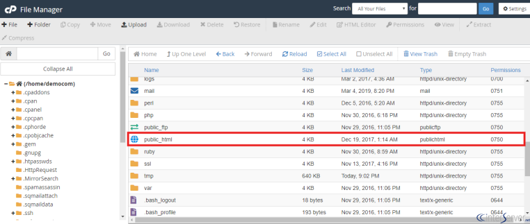Si no puede descargar el complemento "Upload Url and Path Enabler", debe cambiar manualmente los permisos de la carpeta "uploads" en WordPress. Para hacer esto, necesita acceder directamente a los archivos en el servidor a través de FTP o cPanel. Para los propósitos de esta guía, los pasos que describimos son aplicables a los usuarios de cPanel, ya que esta es la herramienta que usa la mayoría de las personas que administran sus propios sitios web.